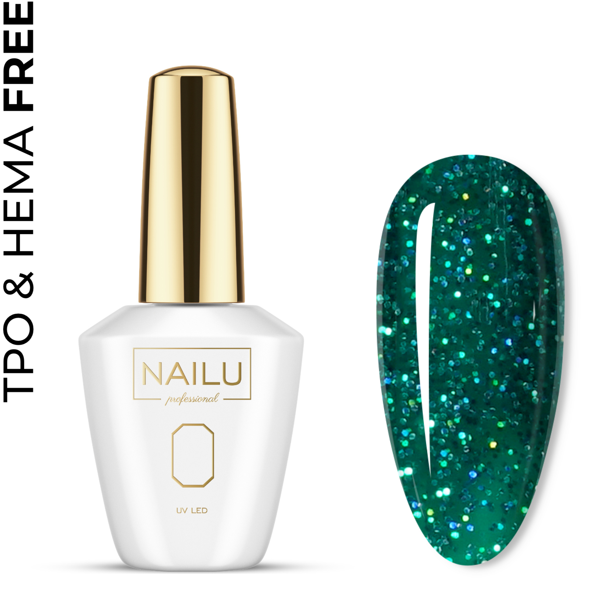 Lakier hybrydowy brokatowy #309 Feel it - Święta Bożego Narodzenia jeszcze daleko? Z kolorem Feel It możesz je mieć ze sobą już każdego dnia. Piękny zielony żywy kolor z dużą ilością pięknych drobinek daje nam oszałamiający efekt.