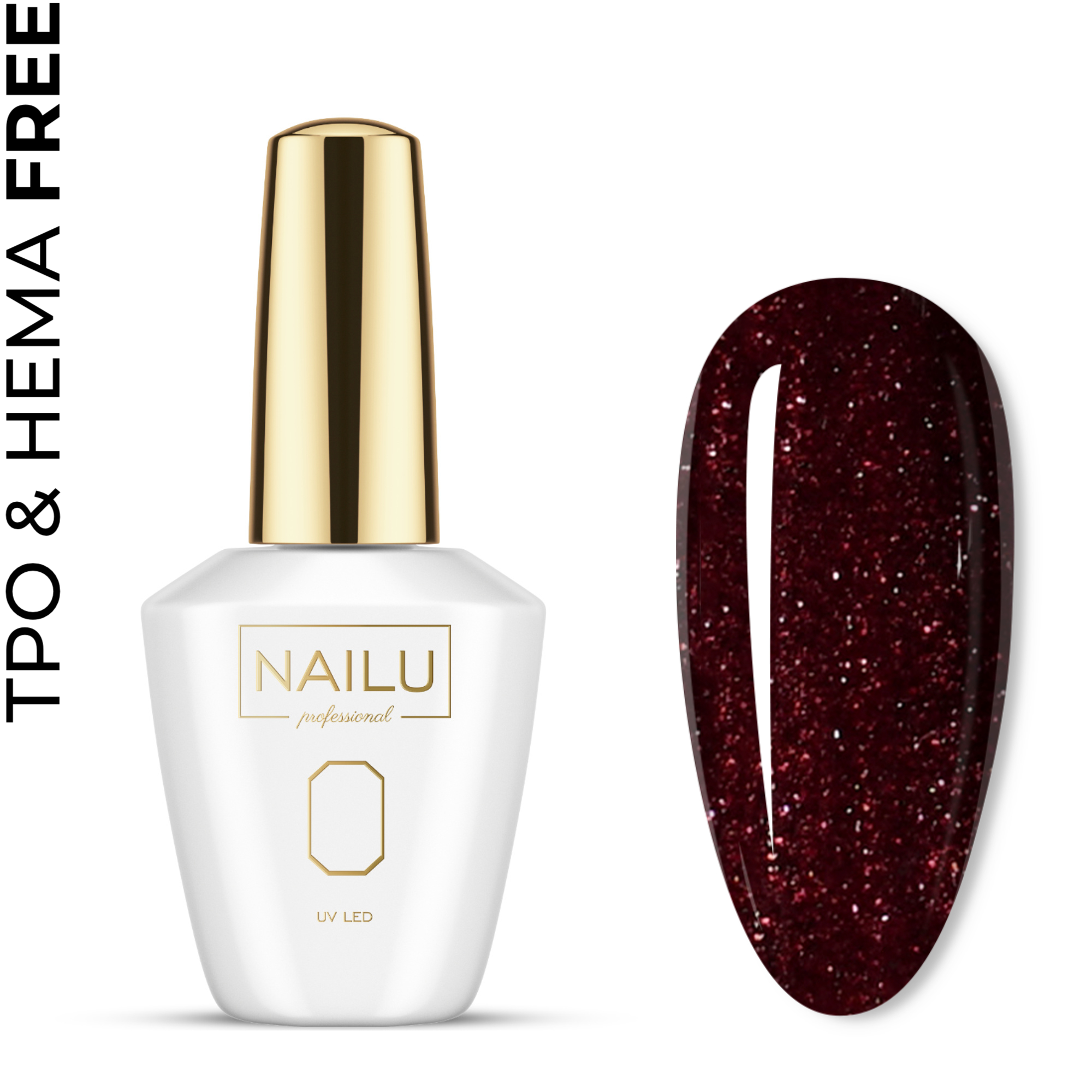 Lakier hybrydowy brokatowy #712 Sparkling wine - Głęboki bordowy kolor z dużą ilością brokatu.