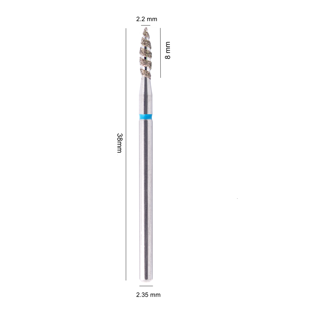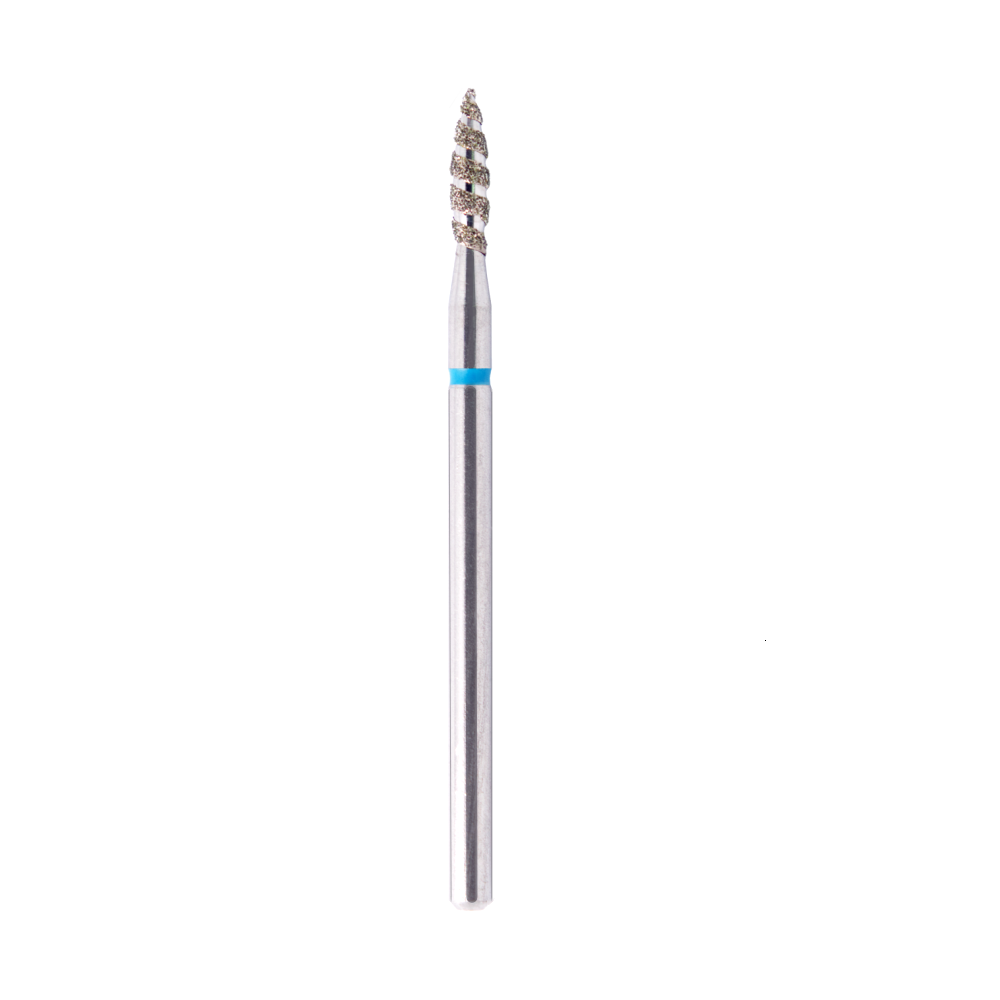Frez diamentowy w kształcie płomyka spiralnego o niebieskiej gradacji to zaawansowane narzędzie przeznaczone do efektywnego i precyzyjnego opracowywania skórek oraz wałów okołopaznokciowych. Dzięki spiralnym nacięciom zapewnia płynniejszą pracę, lepsze odprowadzanie pyłu i większą kontrolę podczas zabiegu.