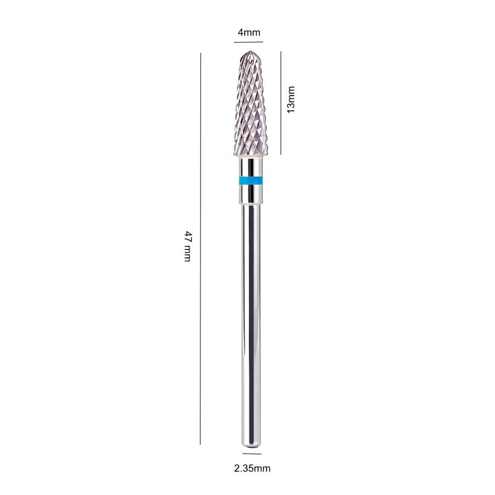 Wąska, stożkowa końcówka zapewnia maksymalną precyzję pracy – idealnie sprawdza się przy opracowywaniu tunelu oraz pracy od spodu paznokcia. Spiralne nacięcia gwarantują płynną i cichą pracę bez szarpania, zwiększając komfort zarówno stylistki, jak i klientki.