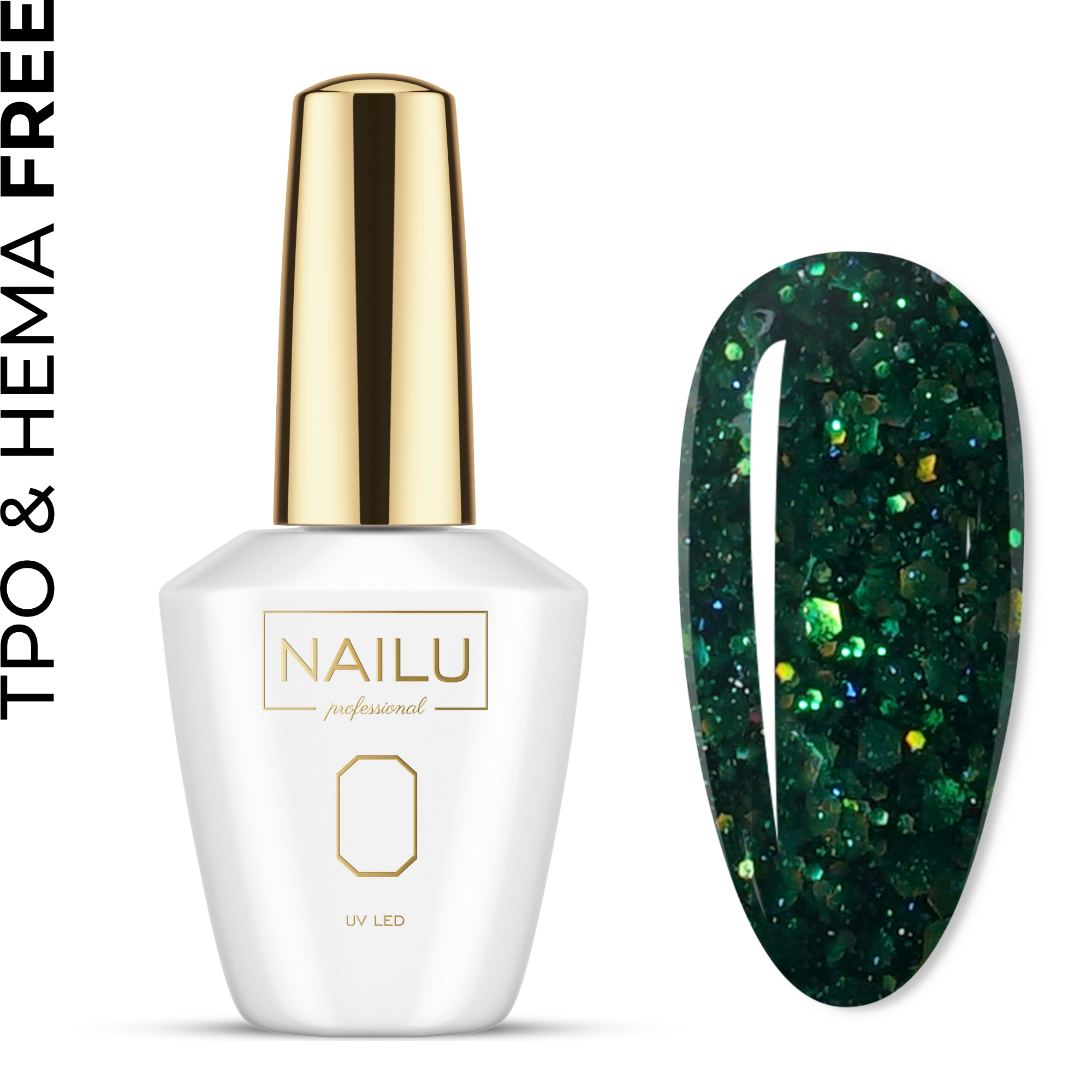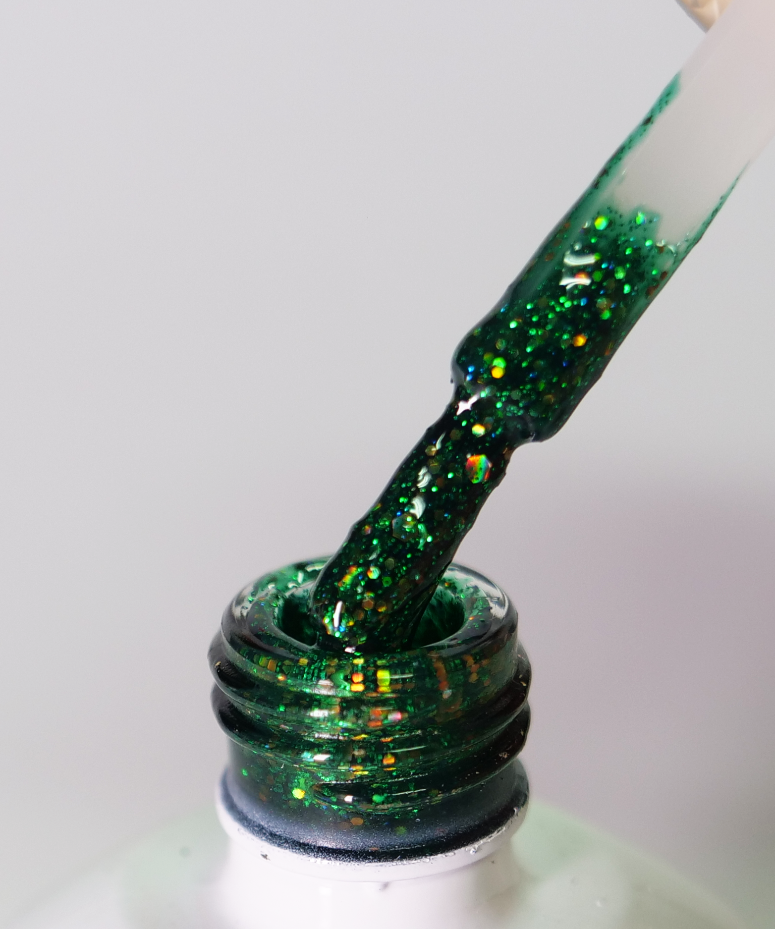 Lakier hybrydowy brokatowy #716 Minty Magic - Brokat idealnie wpasowany w świąteczne stylizacje? Oczywiście tylko ten w kolorze butelkowej zieleni z mnóstwem większych i mniejszych drobinek.
